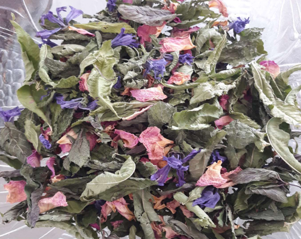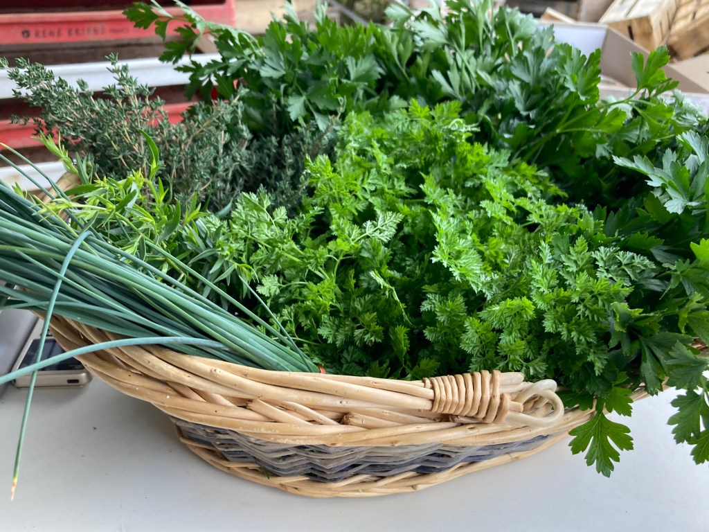 Je cultive une trentaine de plantes aromatiques, mais aussi de l’ail, des échalotes, oignons, piments, petits fruits… tout pour donner du goût ! Certaines plantes sont vendues en frais mais la plupart sont séchées pour devenir de délicieuses tisanes ou aromates. Toutes les productions de l’exploitation sont certifiées bio.